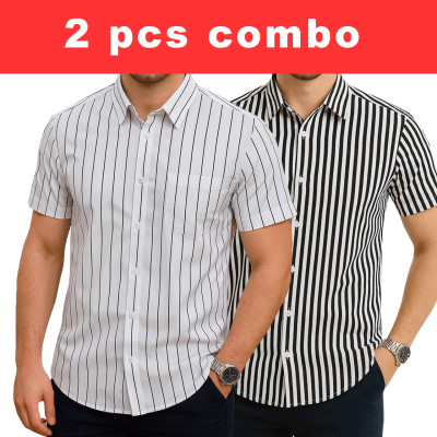 2 Pcs Half Sleeve Print Shirt-Black Small+ White...