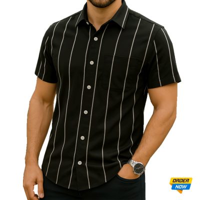 1 Pcs Half Sleeve Print Shirt-Black Small
