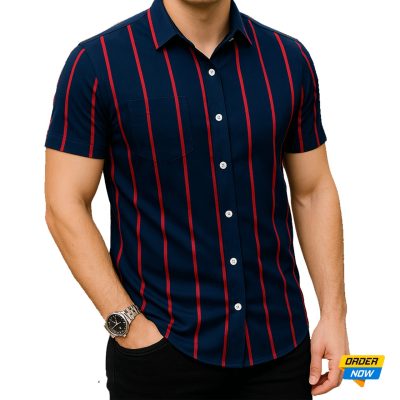 1 Pcs Half Sleeve Print Shirt-Blue Red