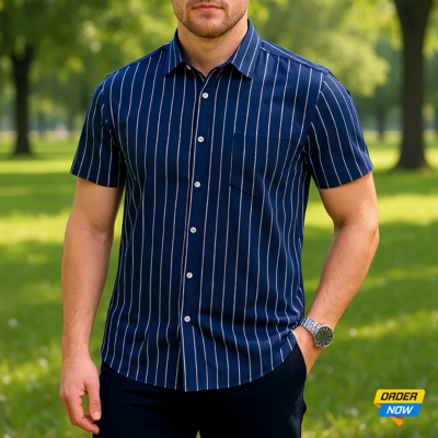 3 Pcs Half Sleeve Print Shirt- (Navy +Black+White...